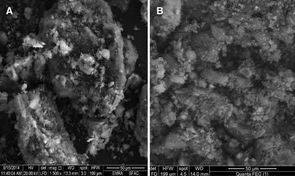 活性炭的SEM顯微照片顯示在圖.1a,b中。活性炭在吸附前的SEM圖像(圖.1a)顯示了單個顆粒的不規(guī)則大小和形狀以及不均勻表面形態(tài)。多孔結(jié)構(gòu)呈現(xiàn)出不同的寬度。吸附后,很明顯,該孔已覆蓋的草氨酰(圖.1的B)。
